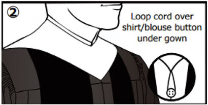 - Secure cord across the back to keep hood together. DO NOT CONNECT HOOD TO THE GOWN.