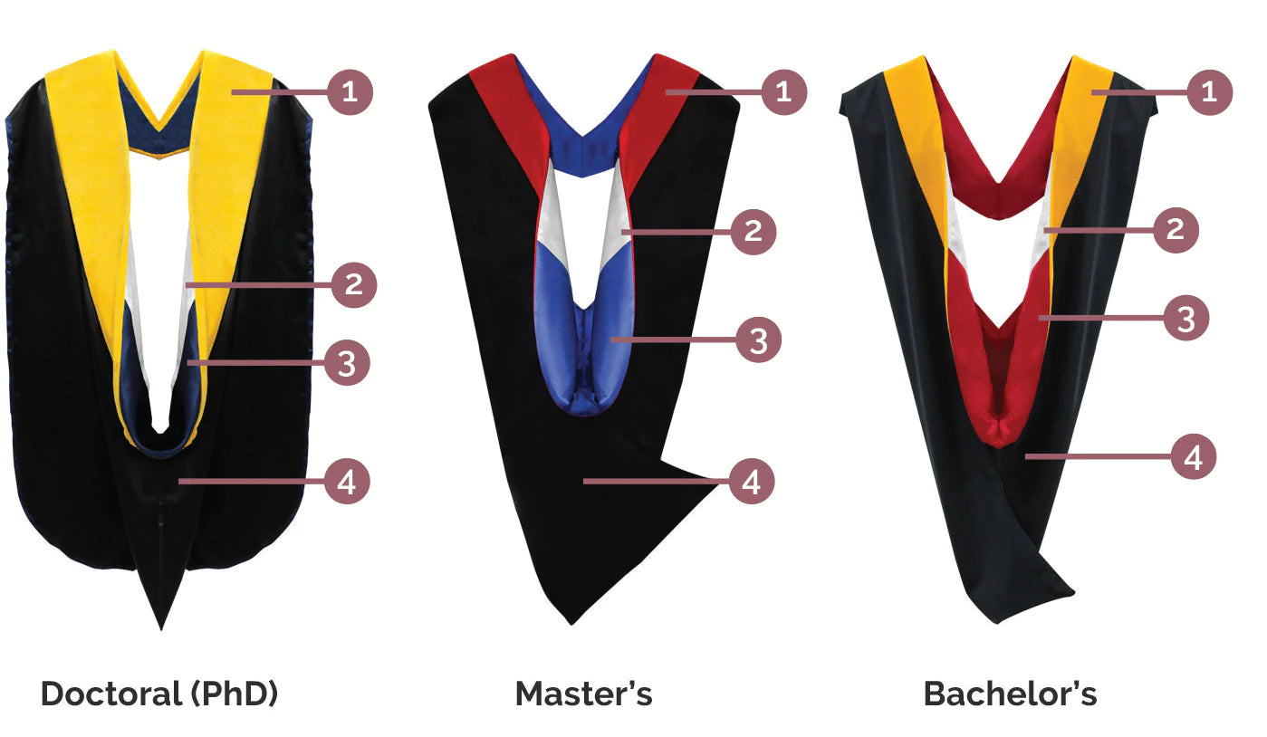 - Turn out lining colors as illustrated. Illustration shows a Doctor Hood. Master and Bachelor or Hoods are smaller but worn in the same manner.